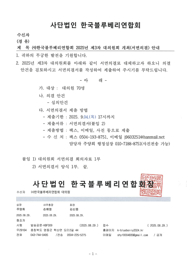 2025년 (사) 한국블루베리 전국 세미나 개최공지